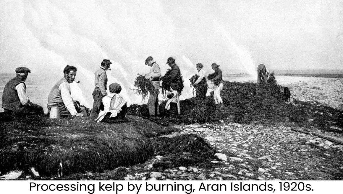 Aran families supplemented their income by collecting kelp from the shore which was then transported to the mainland and sold to factories that extracted iodine from it. This was dangerous, backbreaking work that yielded little profit (at best around £4 per ton), even when demand was high. And yet it was essential because it was the primary source of cash to pay rent to landlords.