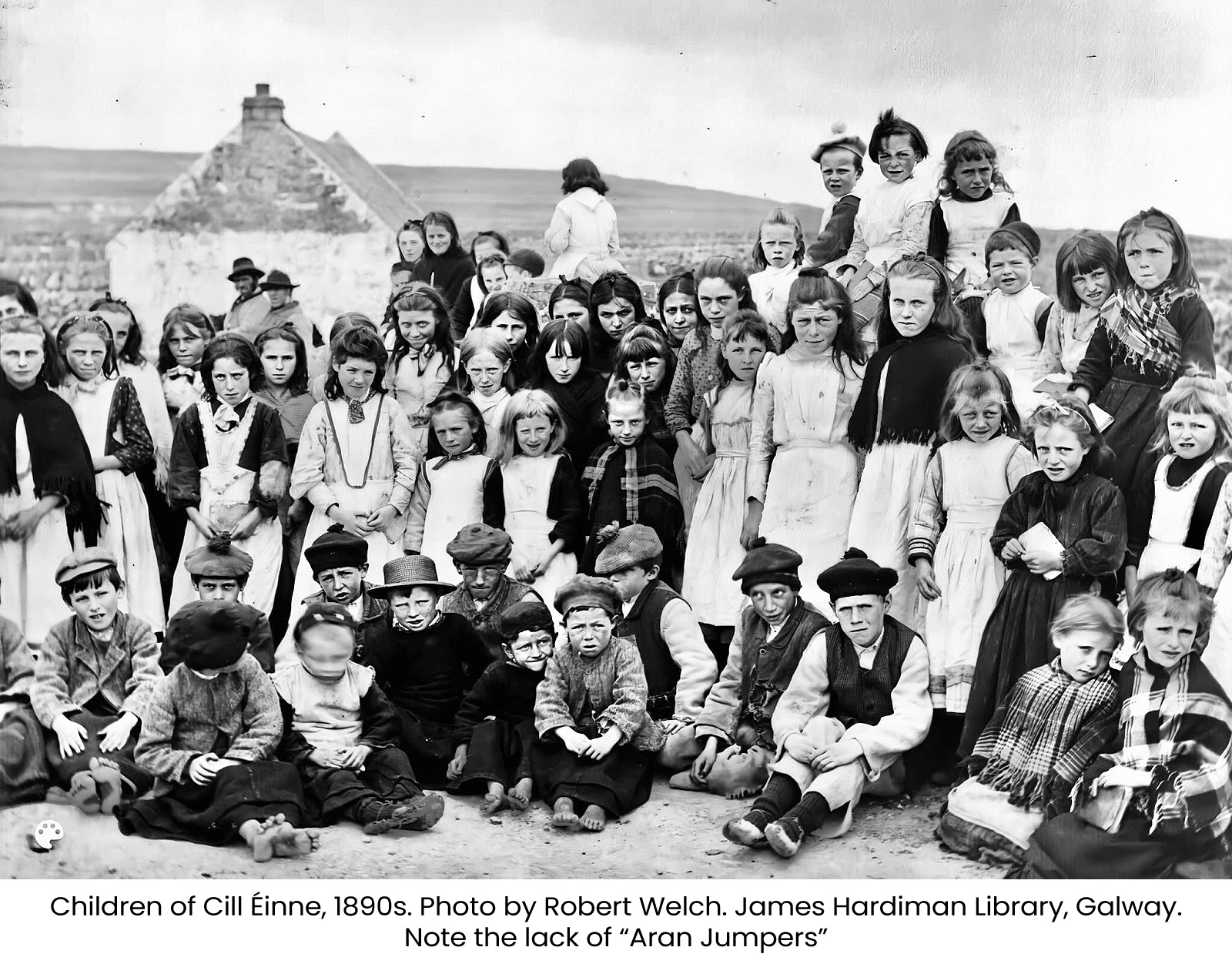 Most historians agree that Aran knitting developed as recently as the 1890s or early 1900s. It is not ancient. In fact the Aran sweater was more or less intentionally invented. Not a native form of folk dress, but rather a tool created to help relieve a crisis.