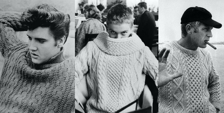 From the 1930s onwards, the Aran sweater gained a steadily growing popularity across Ireland, then the UK and the United States and Canada. This was spurred mid-century by adventurous outdoorsmen and then media figures including Steve McQueen, Elvis Presley, Grace Kelly and Marilyn Monroe - all of whom appeared in film or photoshoots wearing the garment. Much more recently you will see stars like Chris Evans, Taylor Swift and Adam Driver wearing it.