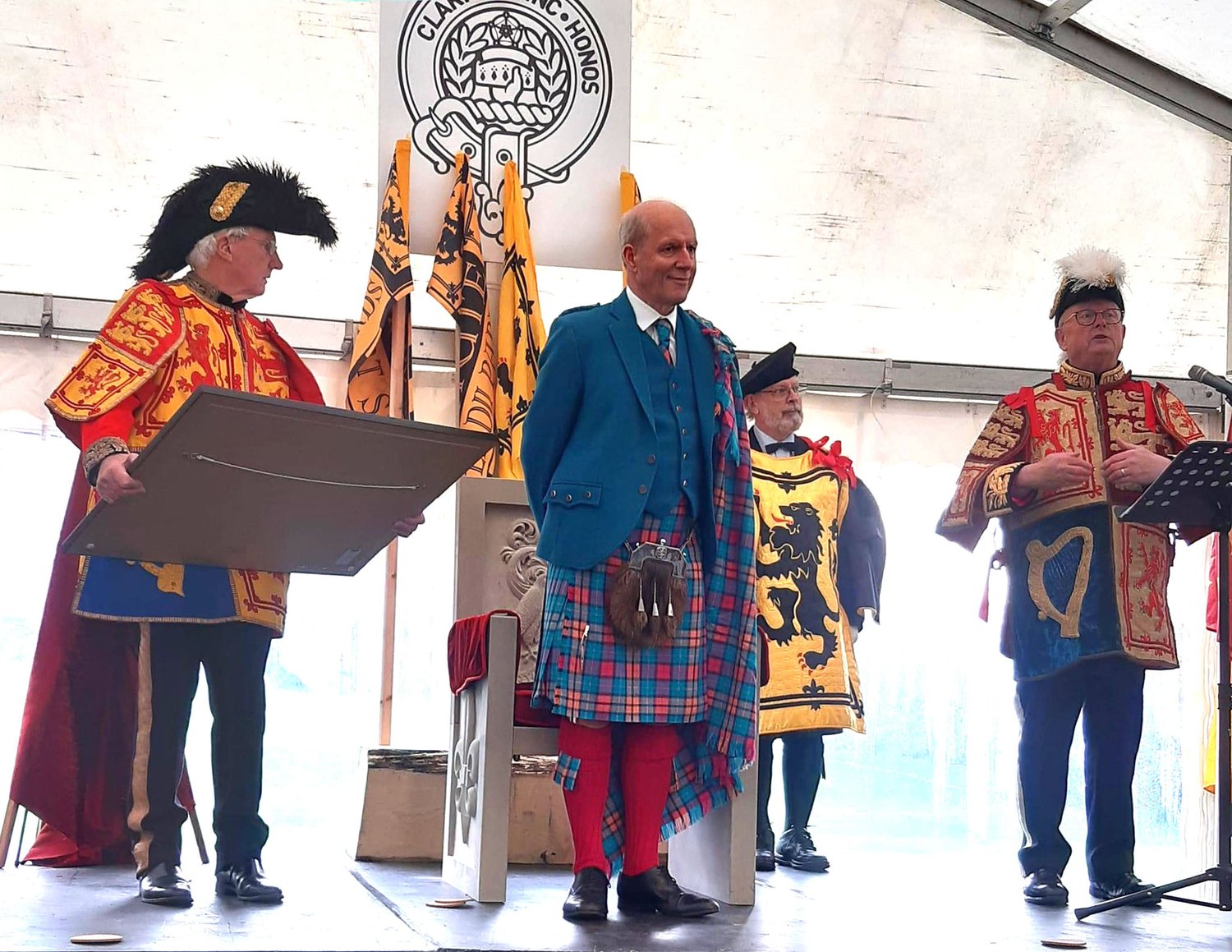 The claim to the chiefship was upheld in August 2018 by the Lord Lyon King of Arms, the head of the official heraldry court in Scotland. A formal inauguration ceremony, drawing on ancient Gaelic rituals, was held in October 2022 at the family's ancestral home, the Cambusmore Estate in Callander, Stirlingshire.
