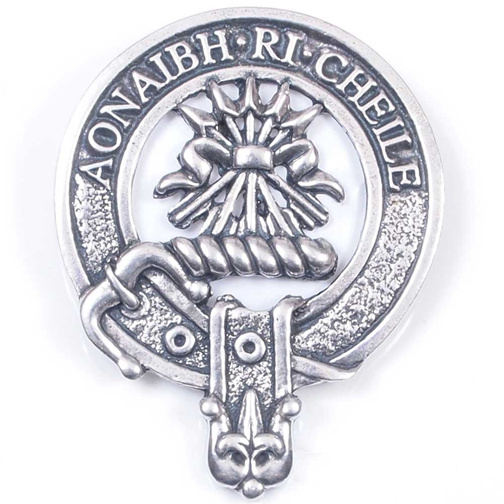 The crest of Clan Cameron consists of a sheaf of five arrows with the points upwards drawn "proper" (this is realistically) and tied with a "band Gules" (a red colored ribbon or belt). The crest symbolizes the unification of the five branches of the clan.
