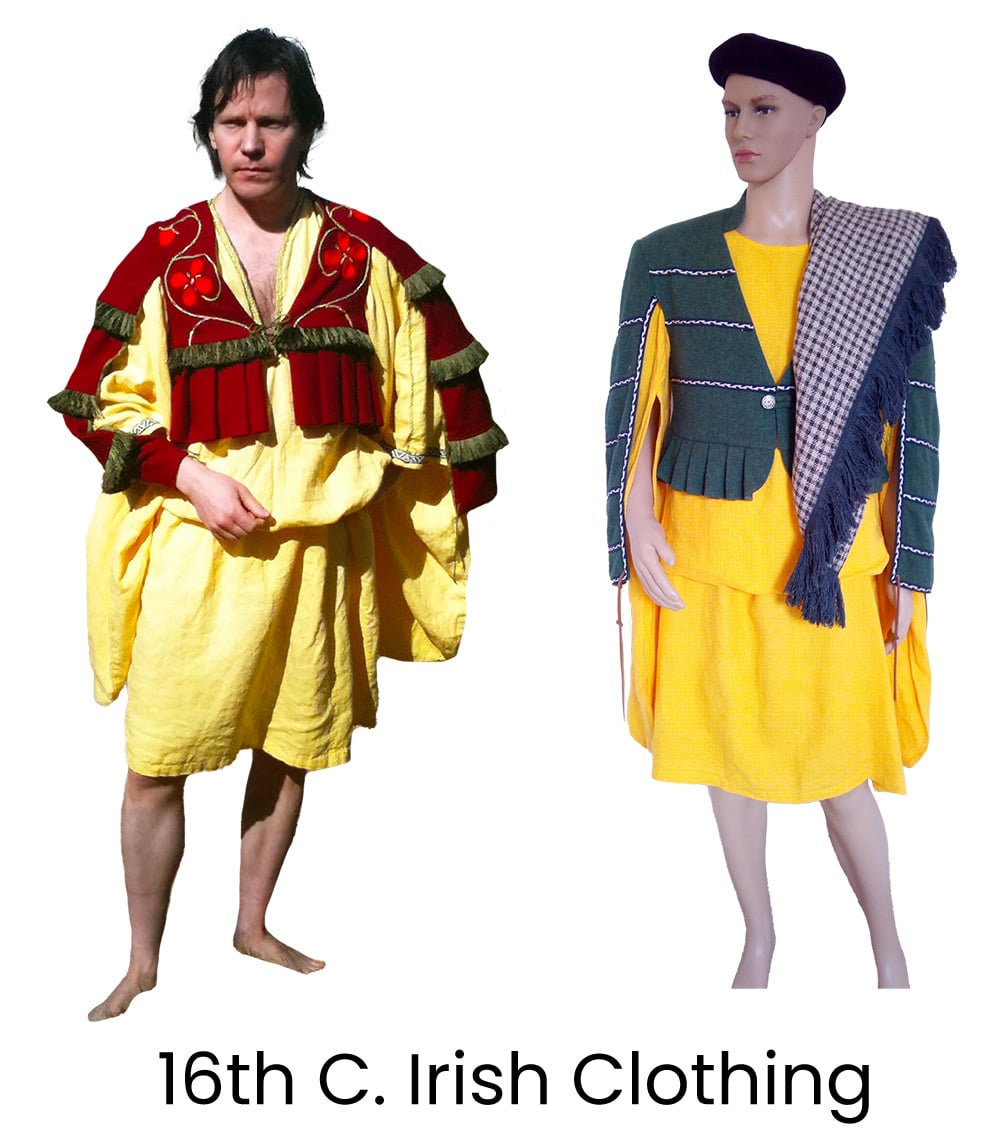 Side note: 16th century images of Irishmen wearing no trews, but a voluminous léine, once led some people to imagine that the Irish invented the kilt. There's no real evidence for this.