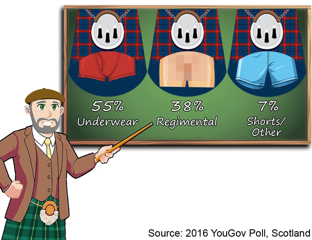 Back in 2016, Scottish news outlet YouGov polled Scots to find out what men actually wear under their kilts. Among those who reported having worn a kilt: