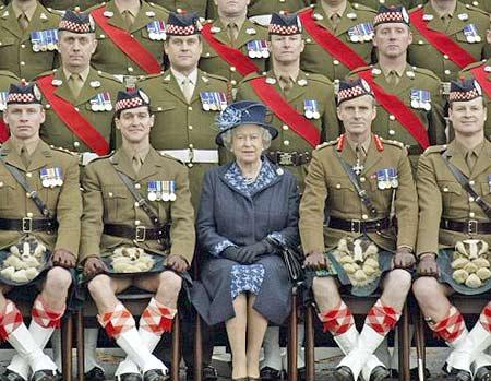 You may also recall the famous photo of a kilted officer exposing himself while seated next to Queen Elizabeth II back in 2004. Hate to break it to you but the lewd version of this image is a hoax. The officer was Col. Simon West of the 1st Battalion of the Argyll and Sutherland Highlanders. Looking at the UN-photoshopped image, it is still possible that West is regimental, but he just as well might be wearing black briefs.