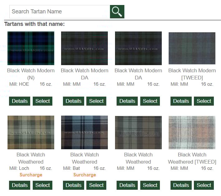 So keep that in mind as we go forward. We are only talking about color variations of the same tartan design. When you look at tartans in the Register of Tartans (or our own tartan database), you’ll see that while the thread count (the sett) stays the same, the color palette can change dramatically.