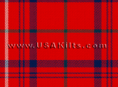 The text of the Vestiarium Scoticum (1842) gives the colours as purple and crimson but in the plate they appear as mid blue and scarlet. The Lord Lyon records crimson as red. D.C. Stewart regarded this sett as a 'dress' tartan. ('The Setts..' 1950) James Logan records a 'hunting' version. ('The Scottish Gael' 1831). The following is thought to have come from a letter to Wilsons circa 1822 from a merchant: "Please send me a piece of Rose tartan, and if there isn't one, please send me a different pattern and call it Rose." In other words the clan tartan system just developed.
