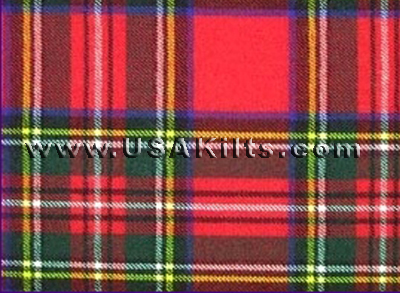 The best known of all Scottish tartans, the Royal Stewart is the tartan of the Royal House of Stewart and the personal tartan of the reigning monarch. Theoretically it cannot be used or worn without the express permission of HM The Queen. In practice however, this is the most popular tartan ever woven and is now regarded as a Universal tartan (i.e. can be worn by ANYONE who has no clan tartan).