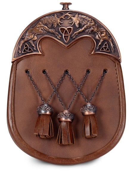 24. Stag & Trinity Knot Day Sporran - Distressed Tan
